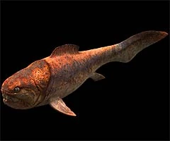 Dunkleosteus was a large, armoured fish that lived roughly 380-360 million years ago. It was carnivorous, and the top predator in the Devonian seas. Its name means 'Dr.David Dunkles Bones'.